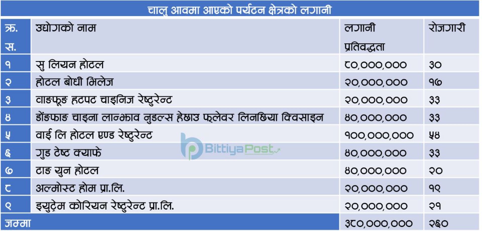 चालु आवको साउन महिनामा नौं उद्योगका लागि ३८ करोड रुपैयाँ प्रस्ताव आएको छ । सरकारको बजेट र मौद्रिक नीतिले पनि व्यवसायीहरूको लगानी गर्ने वातावरण झन् खस्किँदै गएको व्यवसायीहरू बताउँछन् ।