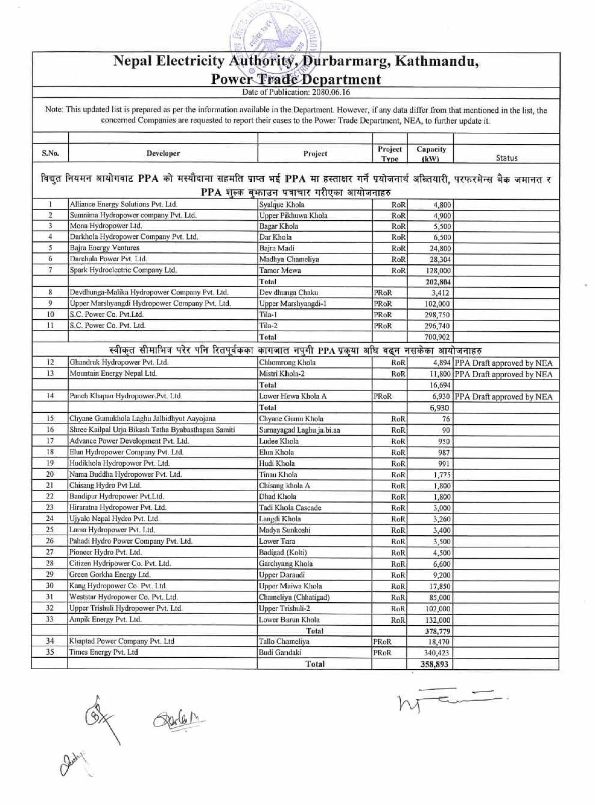 प्राधिकरणले आरओआरका लागि ६ हजार ७५० मेगावाटसम्म र पिआरओआरका लागि ४ हजार ५०० मेगावाटसम्म क्षमता सीमा भित्र पर्ने आयोजनाहरुसँग पिपिए गर्ने गरी लागि आवेदन माग गरेको थियो । त्यसमध्ये रितपूर्वक आवेदन परेकाहरुसँग प्राधिकरणले पिपिए गर्ने तयारी अघि बढाएको हो ।