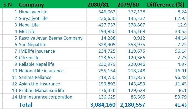 पुस मसान्तसम्म आइपुग्दा सानिमा रिलायन्सले ९६.४८ प्रतिशत, एशियन लाइफले ११.४५ प्रतिशत, प्रभु महालक्ष्मीले ३६.१० प्रतिशत र लाइफ इन्स्योरेन्स कर्पोरेशनले ५९.७९ प्रतिशतले नाफा बढाएको रिपोर्टमा उल्लेख छ ।