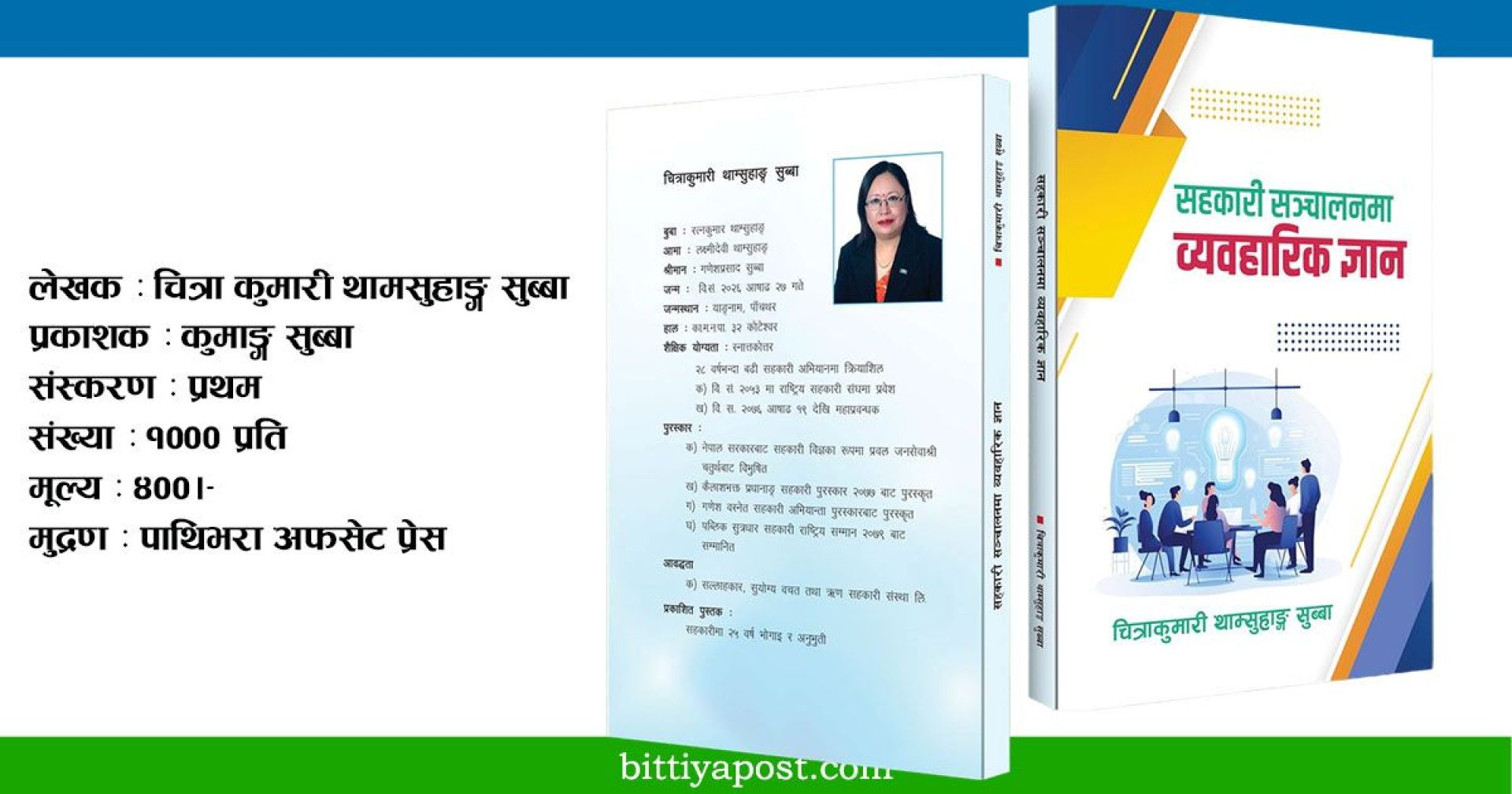 यसै सिलसिलामा, नेपालको सहकारी अभियानमा करिब तीन दशक बिताएकी राष्ट्रिय सहकारी महासंघकी महाप्रबन्धक चित्रा कुमारी थामसुहाङ सुब्बाको दोस्रो पुस्तक ‘सहकारी सञ्चालनमा व्यवहारिक ज्ञान’ बजारमा आएको छ । यसअघि, सुब्बाको पहिलो पुस्तक ‘सहकारीमा २५ वर्षः भोगाई र अनुभूति’ २०७८ पौष २७ गते विमोचित भएको थियो ।