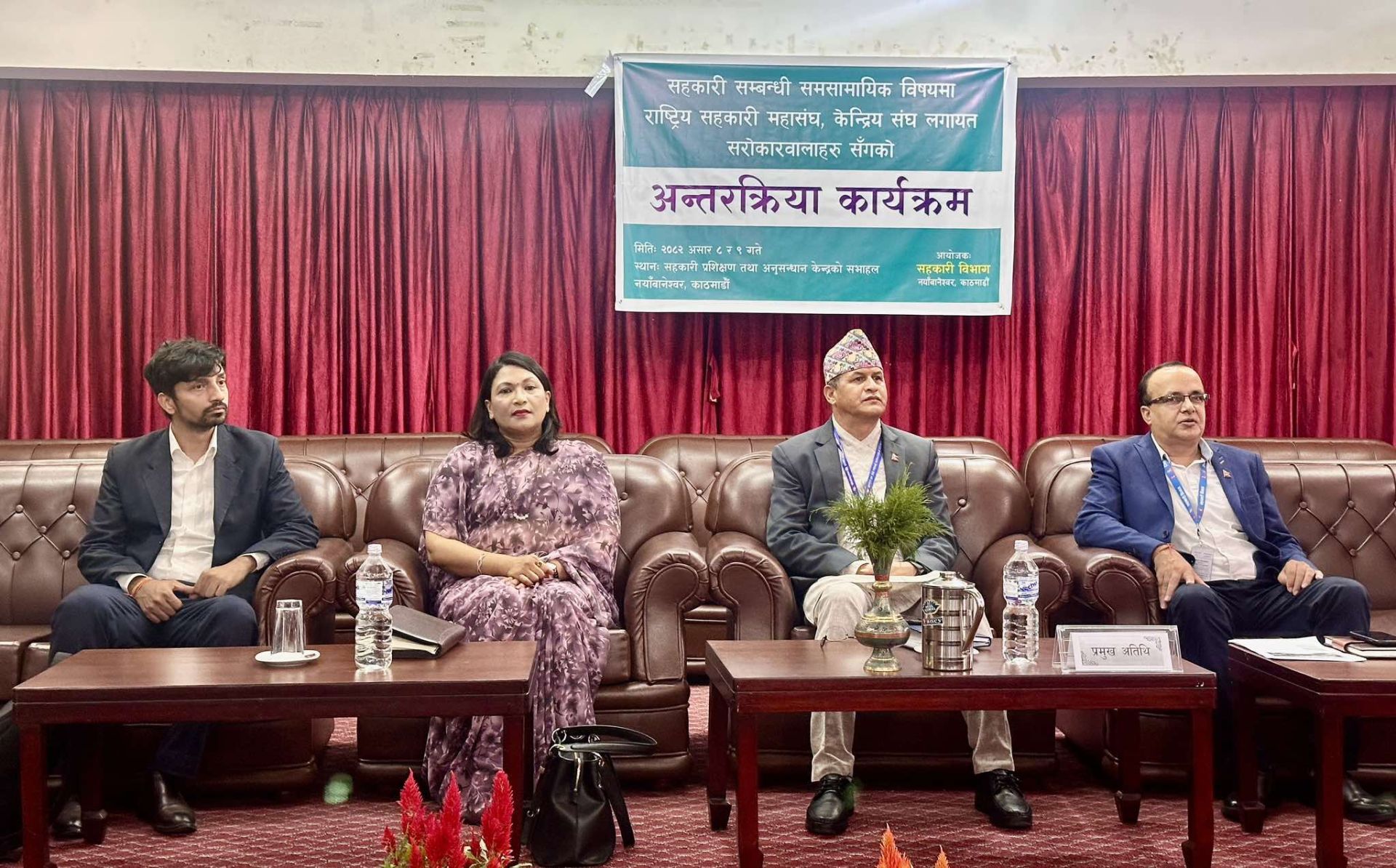 आइतबार सहकारी विभागले आयोजना गरेको ‘सहकारी सम्बन्धी समसामयिक विषयमा राष्ट्रिय सहकारी महासंघ, केन्द्रीय संघ लगायत सरोकारवालाहरुसँगको अन्तरक्रिया’ कार्यक्रममा कार्यपत्र प्रस्तुत गर्दै रजिष्ट्रार ढुंगानाले सहकारी क्षेत्रमा व्यवस्थापकीय भन्दा राजनीतिक प्रभाव उच्च हुँदा समस्या सिर्जना भएको बताए ।