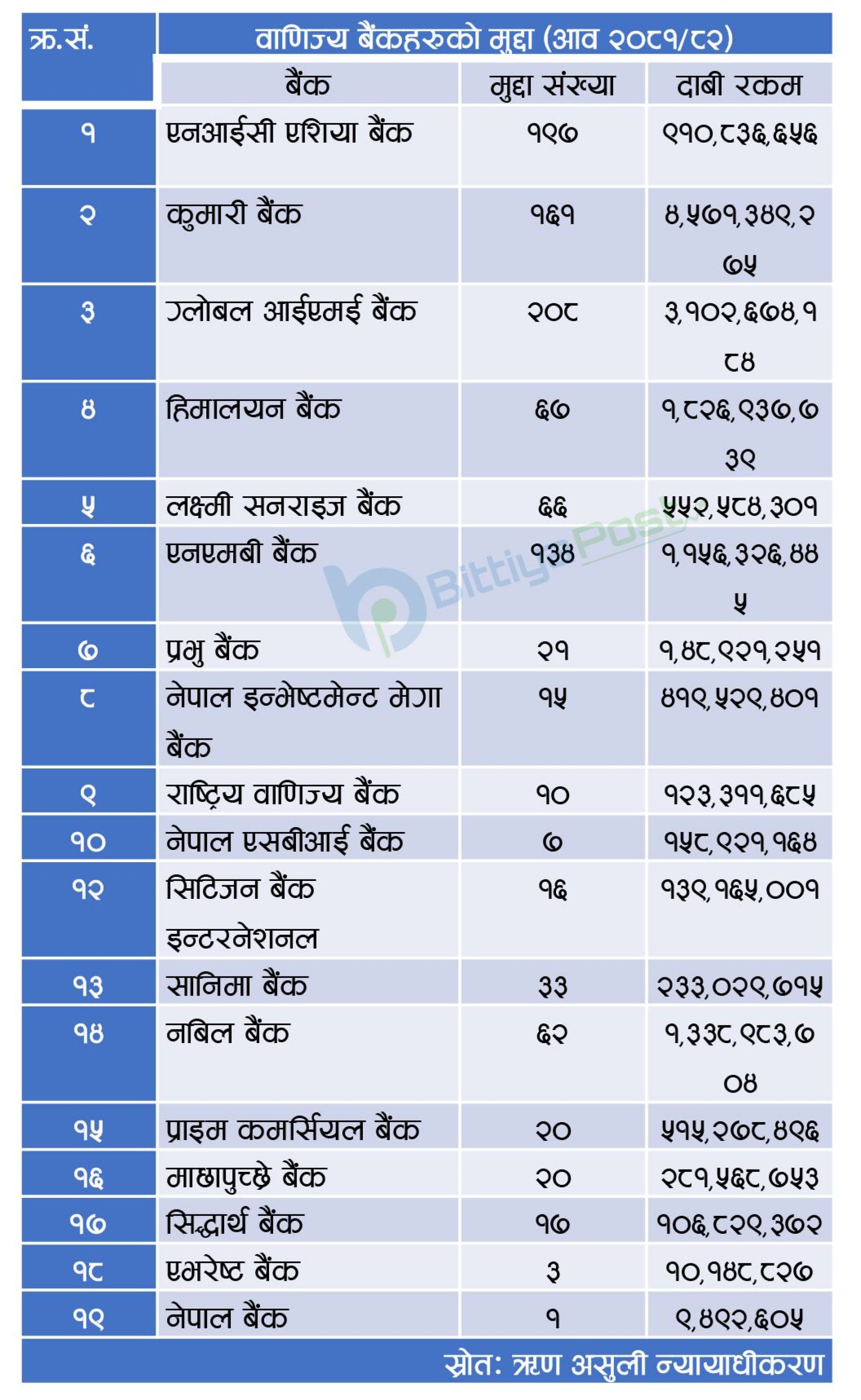 अन्य बैंक तथा वित्तीय संस्थाको मुद्दा
