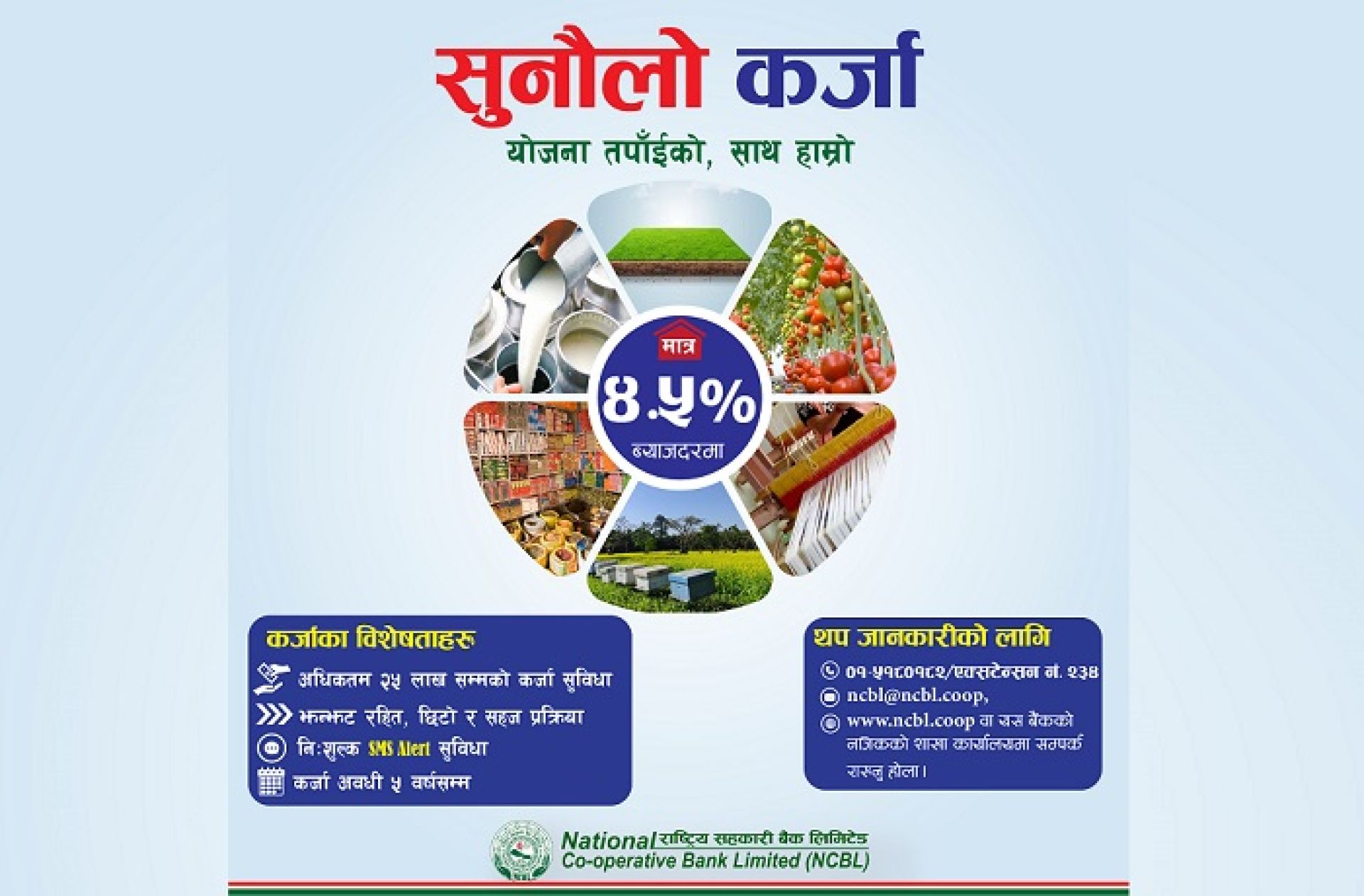 यही परिस्थितिलाई मध्यनजर गर्दै बैंक तथा वित्तीय संस्थाहरूले साना तथा सहज कर्जा योजनाहरू सार्वजनिक गर्न थालेका छन् । यसै क्रममा राष्ट्रिय सहकारी बैंकले “योजना तपाँईको, साथ हाम्रो” भन्ने नारासहित ‘सुनौलो कर्जा’ योजना ल्याएको छ ।