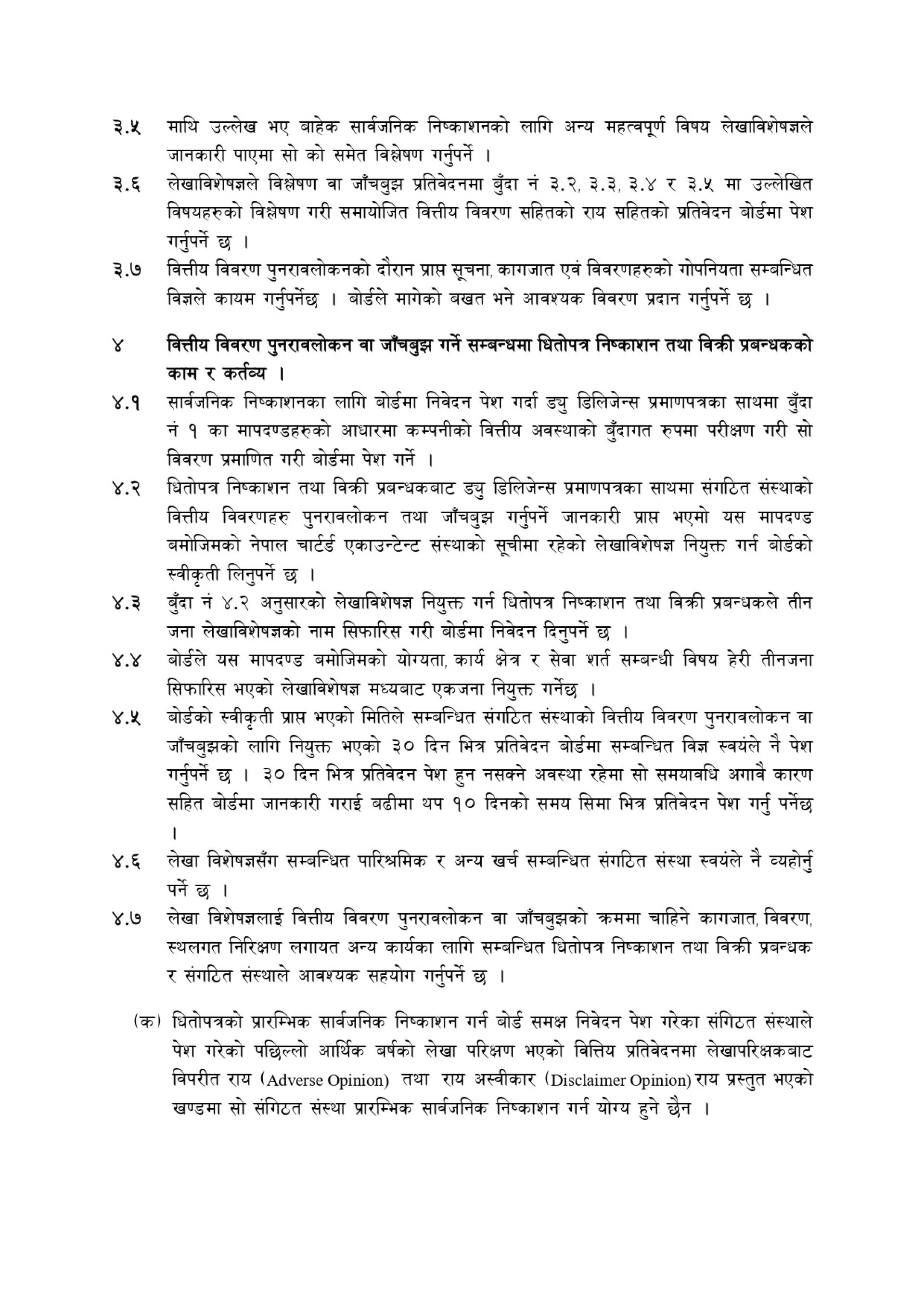 बोर्डले निर्णय गरेको अनुसार अब सार्वजनिक निष्काशनका लागि आवेदन दिने सबै संगठित संस्थाले पेश गरेको आर्थिक विवरण र वित्तीय प्रतिवेदन आवश्यक अनुसार लेखा विशेषज्ञमार्फत पुनरावलोकन वा जाँचबुझ गराउनुपर्ने व्यवस्था गरिएको छ।